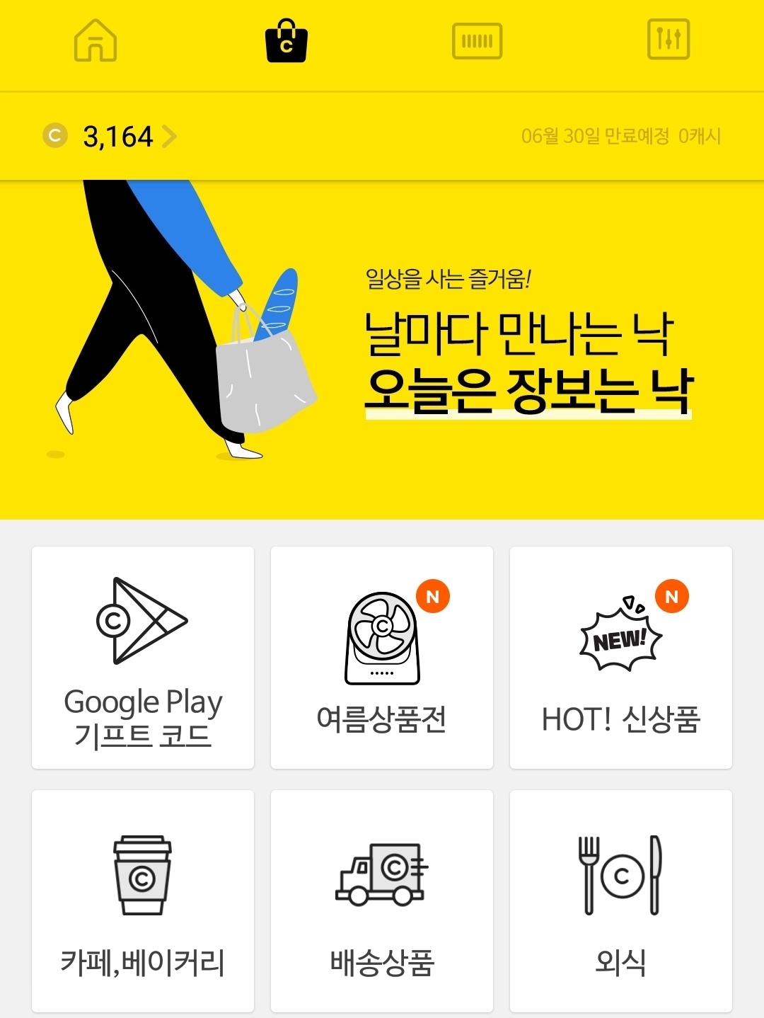 : 앱 내의 아이콘 자체가 서로 유기적으로 연결되어있어 편리하다. 메인 화면(홈, 쇼핑, 쿠폰, 설정 등) 어디에서든 접근이 가능하다.